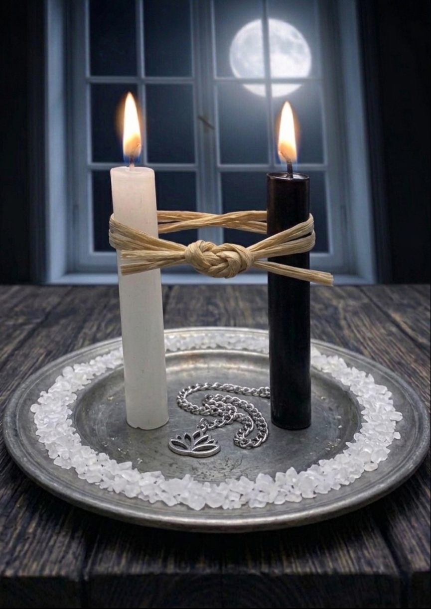 Le geste : Allumez les bougies. Lorsque la flamme atteint la corde et que celle-ci cède, visualisez le lien se dissoudre en étincelles de lumière.